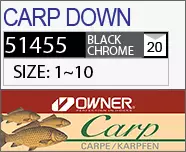 Крючки серии Owner 51455 Carp Down из толстой прочной проволоки с полукруглым загибом и удлиненным цевьем предназначены для ловли крупной рыбы на объемные насадки.