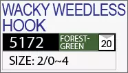 Owner/C'ultiva 5172 Wacky Weedless Hook – специальный крючок для монтажа «вэки». Имеет защиту жала от подводной растительности и мусора в виде двух нейлоновых усов. Такой монтаж популярен в бассовой ловле. Мягкая силиконовая приманка, как правило, червь, реже слаг или виброхвост, крепится посередине тела.