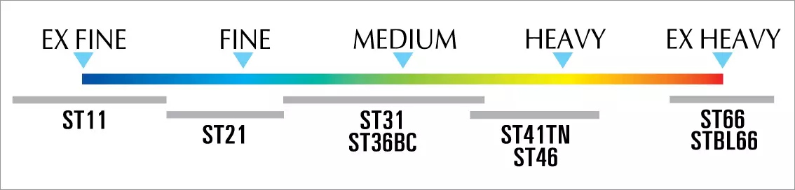 Относительная толщина проволоки, применяемой при изготовлении крючков серии ST
