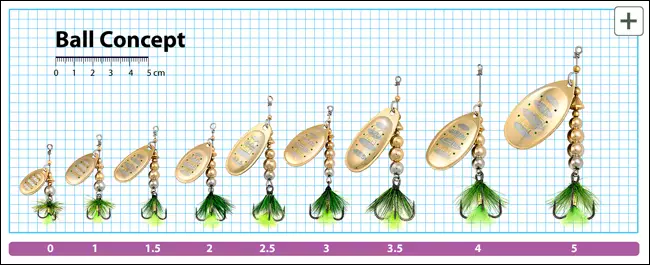 В 2014 фирма Pontoon21 анонсировала расширение градации вращающихся блёсен, предоставляя тем самым возможность более точного выбора нужного варианта. В результате в сериях Synchrony и BCS (Ball Concept Spinner) в дополнение к уже существующему переходному размеру #1,5 появились размеры #2,5 и #3,5.