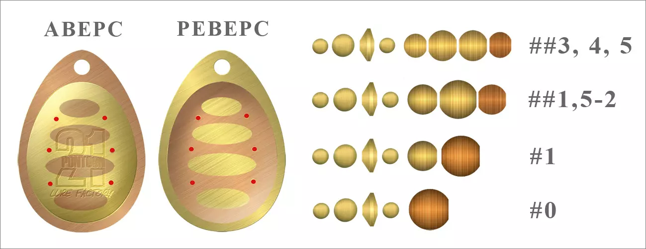 В 2014 фирма Pontoon21 анонсировала расширение градации вращающихся блёсен, предоставляя тем самым возможность более точного выбора нужного варианта. В результате в сериях Synchrony и BCS (Ball Concept Spinner) в дополнение к уже существующему переходному размеру #1,5 появились размеры #2,5 и #3,5.