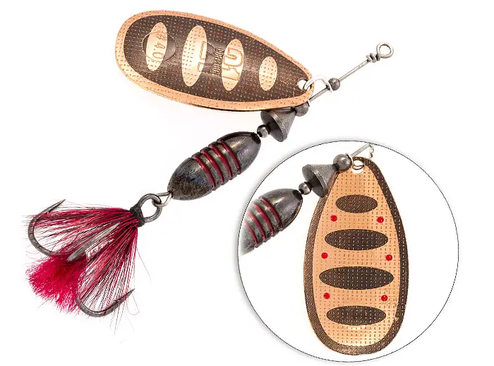 Примечание: вращающиеся блесны Pontoon21® сохраняют прекрасную центровку и при «голом» тройнике, что не раз доказано успехами победителей и призёров национальных и международных рыболовных соревнований, где опушенные тройники не разрешены.