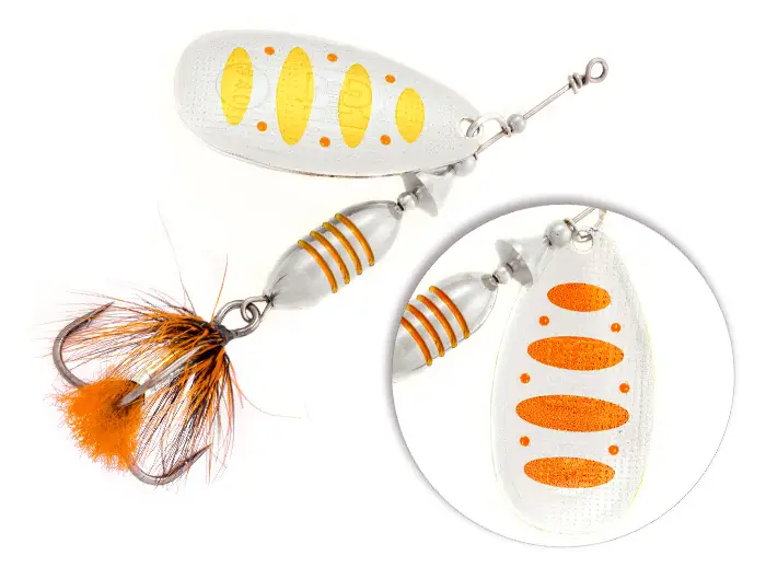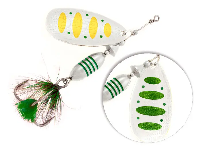 Особенности, выделяющие вращающиеся блёсны Pontoon21 среди всех других: - двусторонняя реверсивная окраска лепестка, создающая при его вращении эффект стабильного объёмного изображения, привлекающий и фокусирующий внимание рыбы под любым углом обзора и атаки;