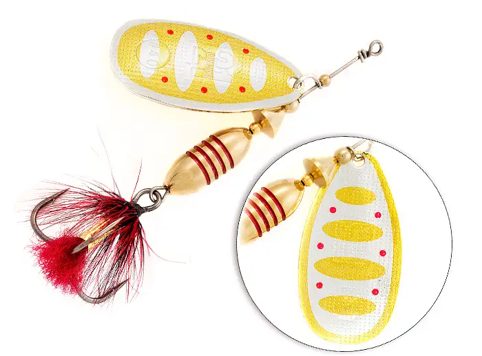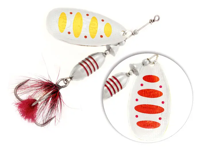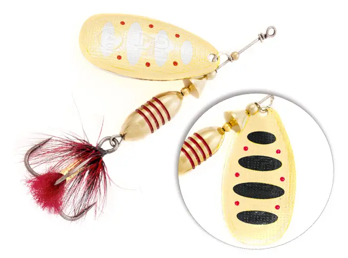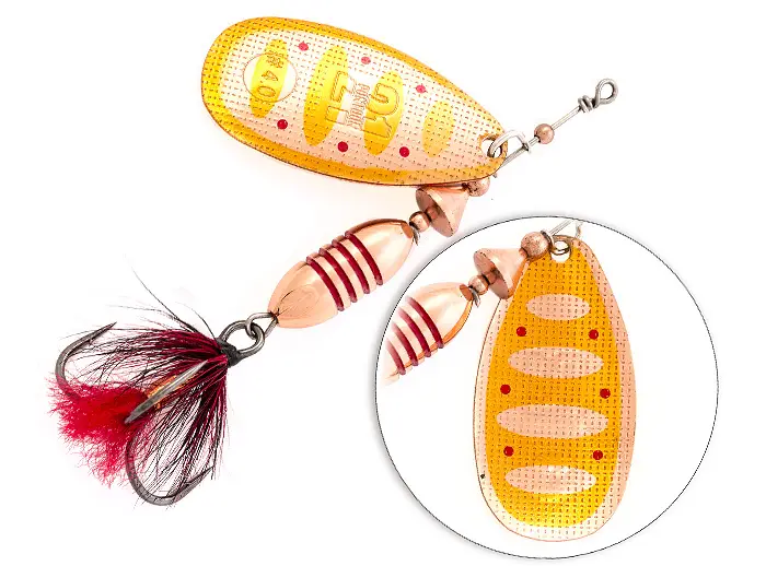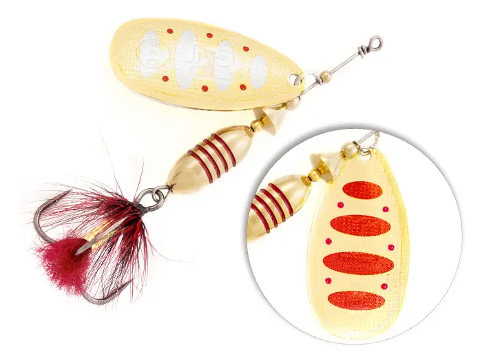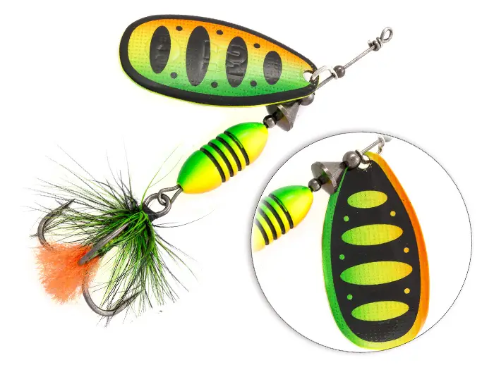 - надёжный тройник с опушкой из качественного материала, гармонирующего с окраской лепестка. Опушка фокусирует внимание хищника, снижая число промахов при атаке, служит камуфляжем для тройника, а также дополнительной балансировкой конструкции в горизонтальном положении.