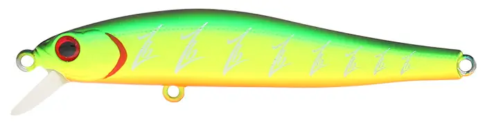 Rigge 70F – мелководная приманка, диапазон ее рабочих глубин ограничивается метровой отметкой. При равномерной проводке, несмотря на свою фирменную игру, выдающихся результатов воблер не показывает, хотя и ловит хищника стабильно. Его амплуа – твичинг, твичинг и только твичинг, причем независимо от того, имеет водоем течение или нет.